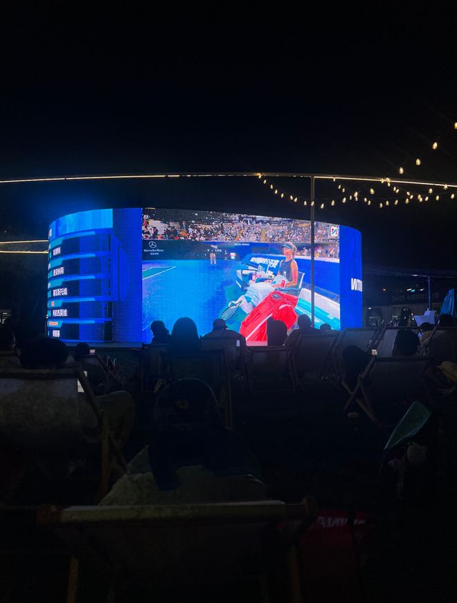 比赛看累了就溜达出来玩会儿打卡游戏领点小礼物买点中网周边,或者随便找个椅子躺下来吹吹风发发呆,别提有多惬意啦。