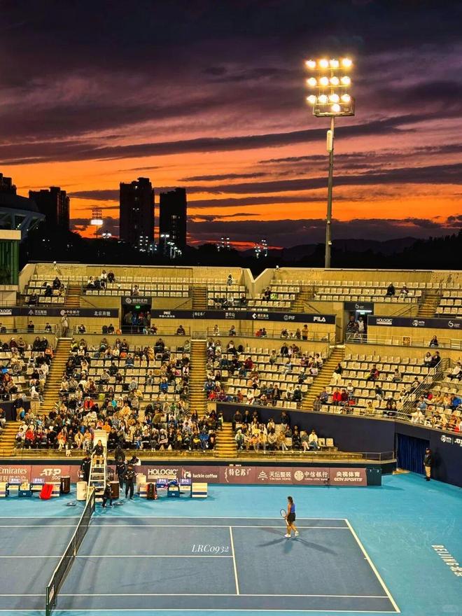 朋友说她去年随便坐在其中一个球场休息,没想到遇上了辛纳的比赛。而且幸运的话会遇上晚霞,在这样的环境下看比赛简直赏心悦目。