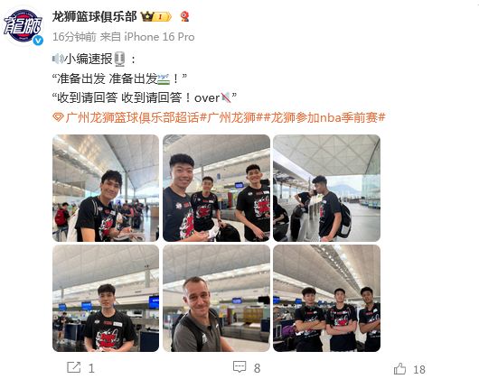 雷速体育9月30日讯 根据广州龙狮官方社媒发文:全队“准备出发 准备出发”的动态。本土阵容:23号陈国豪,3号彰华非,21号张文杰,37号逄砚钧,12号李祥波,11号刘颜诚,24号管子煜,14号李晓桐。外援阵容:奥拉迪波、贾斯汀霍勒迪、卡明斯基、蒂姆弗雷泽、乔治-金、德翁特伯顿比赛时间:10月7日,上午8点00分,广州龙狮vs马刺10月10日,上午10点30分,广州龙狮vs快船10月14日,上午8点00分,广州龙狮vs森林狼相关资讯