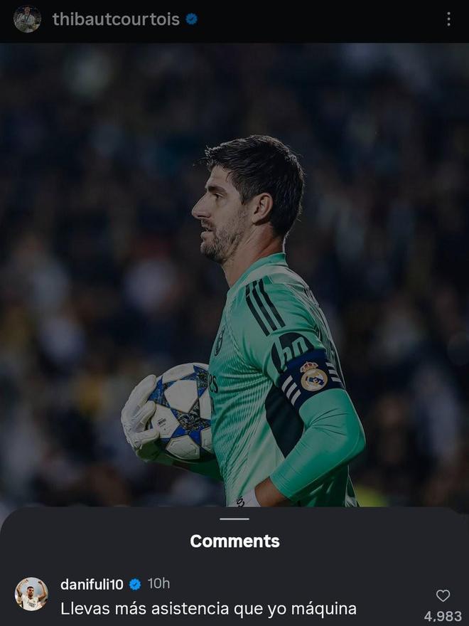 在皇马5-0客胜阿拉木图凯拉特的欧冠赛事中,门将库尔图瓦以一记精准后场长传助攻姆巴佩单刀破门,赛后他在社媒发布照片庆祝胜利,获得队友塞瓦略斯调侃:“你的助攻数已经超过我了。”
