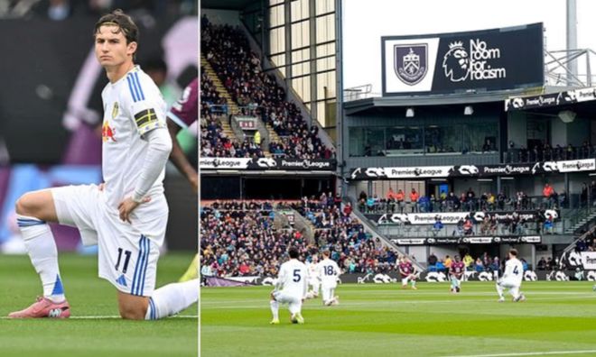 雷速体育10月19日讯 据《每日邮报》报道,在伯恩利主场对阵利兹联的比赛中,当两队其他球员集体做出单膝下跪的反种族歧视手势时,特夫摩尔球场的部分观众发出了嘘声,而利兹联前锋勒温则拒绝参与这一动作。
