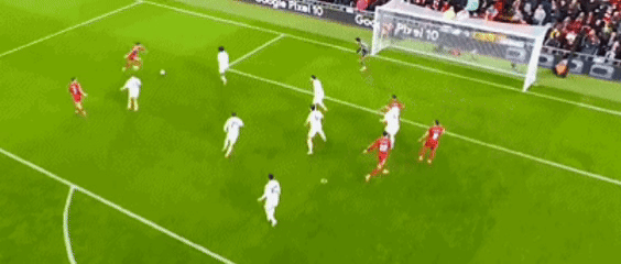 第50分钟,萨拉赫右路送出弧线传中,加克波停球转身、脚踝一扣,随即爆射,皮球再次击中立柱!