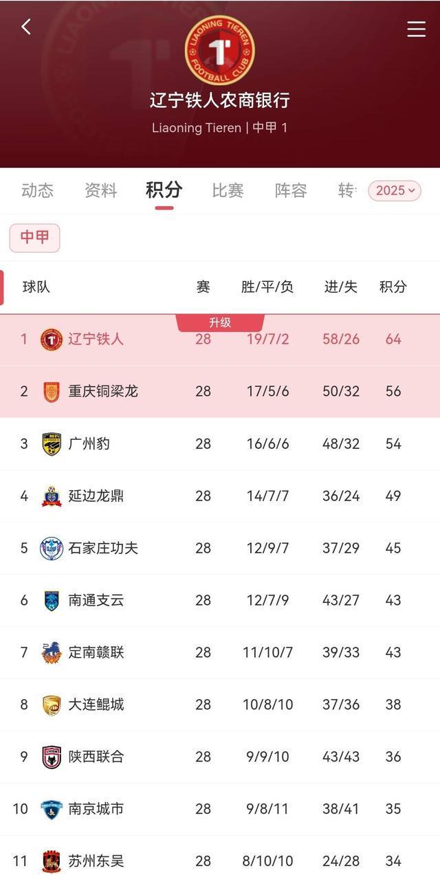 随着中甲联赛进入到收官阶段,备受球迷关注的冲超格局逐渐明朗。除“榜一大哥”辽宁铁人已经提前锁定下赛季的一个中超名额外,排名第二的重庆铜梁龙与排名第三的广东广州豹都还保有冲超希望。
