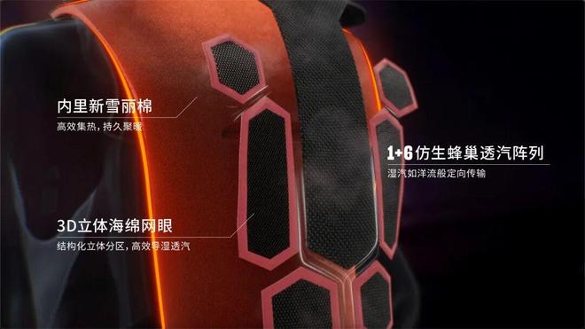 国家队同源的热力洋流3代科技,是帮助同步实现保温与吸湿排汗的一套系统性解决方案。其机理在于独特的蜂巢状模块化结构能使身体产生的热量在服装内循环流通,均匀分布,有效保持体温;配合后背透气窗与腋下拉链构建的“吸入-扩散-排出”湿热管理闭环,又能使运动产生的汗湿蒸汽通过蜂窝通道被快速导出,达成吸湿排汗。