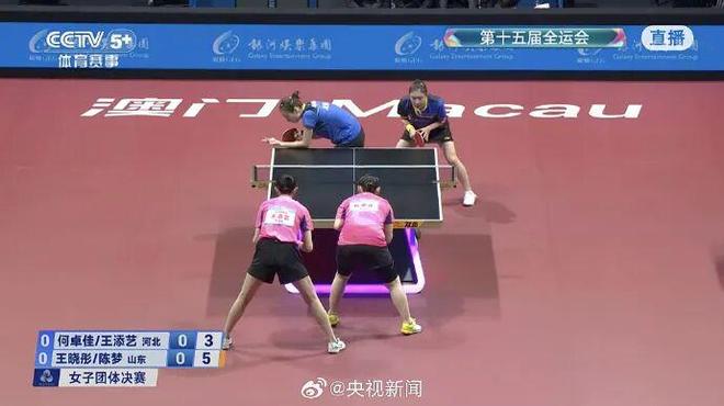据人民日报客户端消息,11月19日,十五运会乒乓球项目在澳门银河综艺馆进行女团决赛争夺。刚刚,由王晓彤、陈梦、范思琦出阵的山东队以3∶2战胜由何卓佳、王添艺、孙颖莎上场的河北队,夺得冠军。