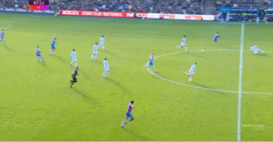 水晶宫的反击,德利赫特意外滑倒,恩凯提亚获得单刀机会。不过,恩凯提亚没有选择横传中路的队友,而是自己带球推进,卢克肖关键的铲球解围化解险情。