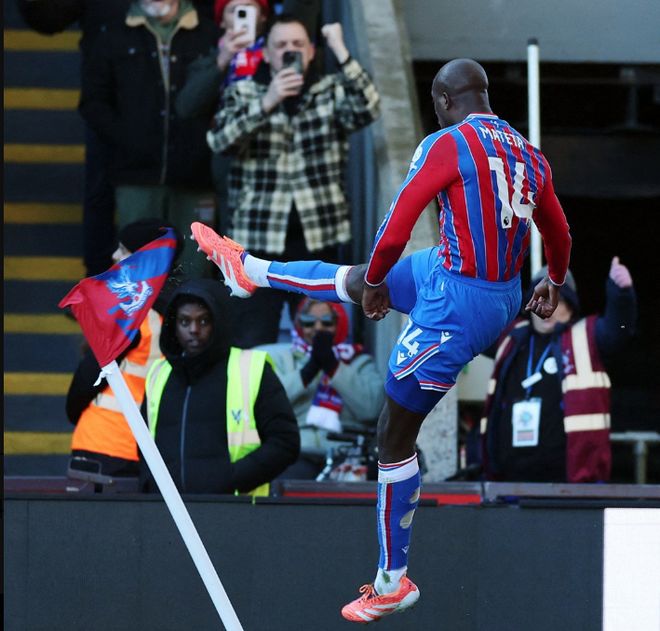 第36分钟,马特塔重罚点球,右脚推射球门右下死角得手,水晶宫1-0领先!