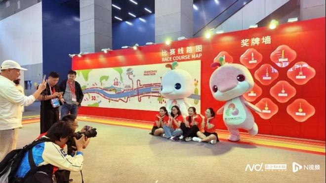 除了领物区外,博览会现场的赞助商和非遗文化展示区也热闹非凡,无论是选手姓名墙,还是VR游戏体验,都吸引了许多跑者驻足打卡。十五运会和残特奥会吉祥物“喜洋洋”“乐融融”更是惊喜亮相,与广马吉祥物“马拉羔”兴奋互动,成为选手们争相合影的对象。