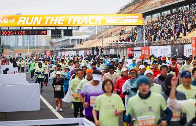 在充满象征意义的F1“上”字形赛道,众多跑友就此踏上了跑向新一年的路途,以马跃龙腾的姿态开启“蒸蒸日上”的2026年。