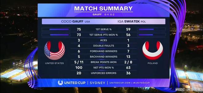 整场比赛,两位选手拥有着迥异的战术思路演变。高芙试图通过提升技术全面性实现蜕变:扩大防守覆盖面积,增强底线相持能力,同时显著提高正手进攻的稳定性和穿透力,她的“六边形战士”属性在这一战中尽显无疑。反观斯瓦泰克,自2024年与费塞特教练合作后,她的打法发生了根本性变化。这位前世界第一试图模仿萨巴伦卡式的暴力进攻风格,却牺牲了原本引以为傲的稳定性和战术多样性。