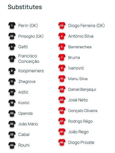 北京时间1月22日04:00,欧冠 联赛阶段 第7轮,尤文图斯主场迎战本菲卡,赛前双方球队首发名单公布如下: